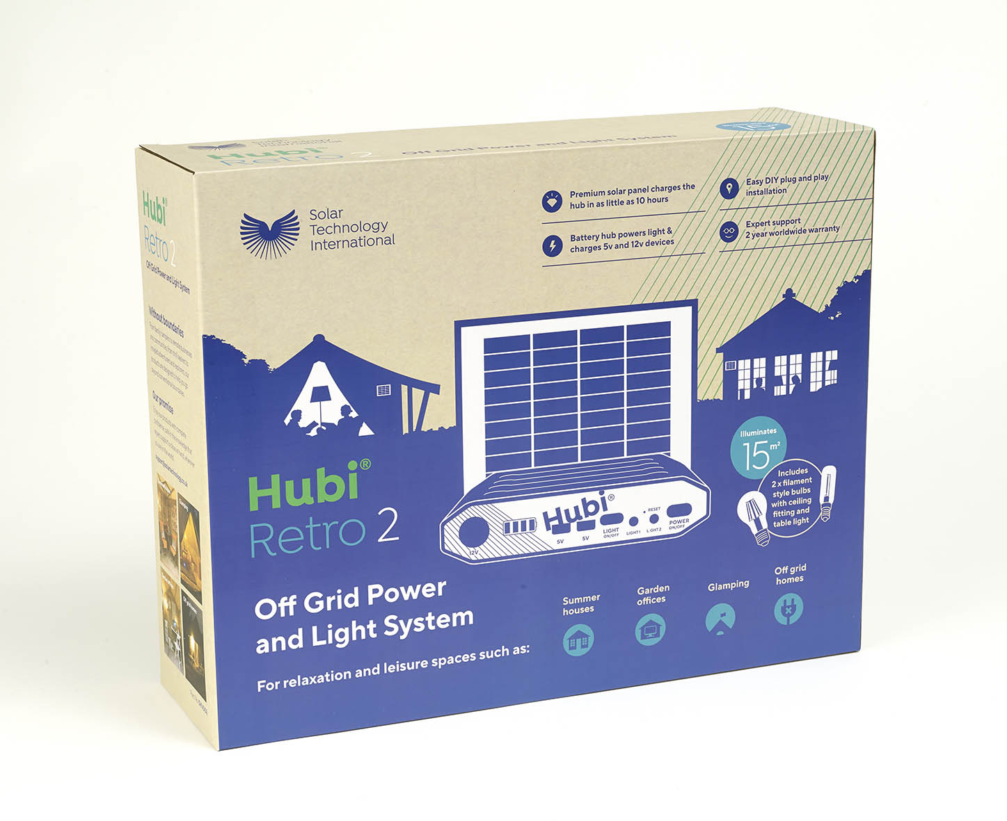 There are four Hubi Retro kits with a range of lighting solutions to suit the size of your camping pod or outdoor room. All kits can be expanded to add more light, more power, more storage and more cable.