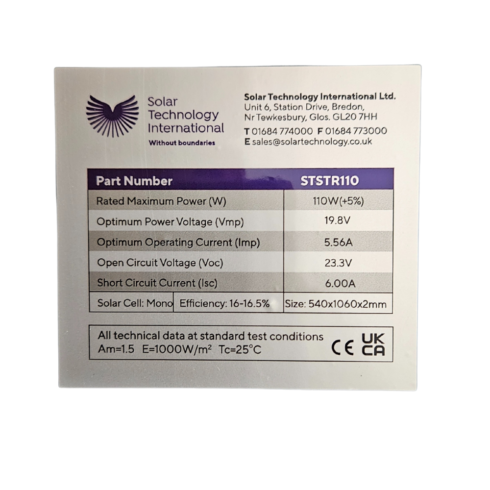 The cable of the 110W flexi panel exits the panel from the underside allowing for a completely flush fit to your roof.