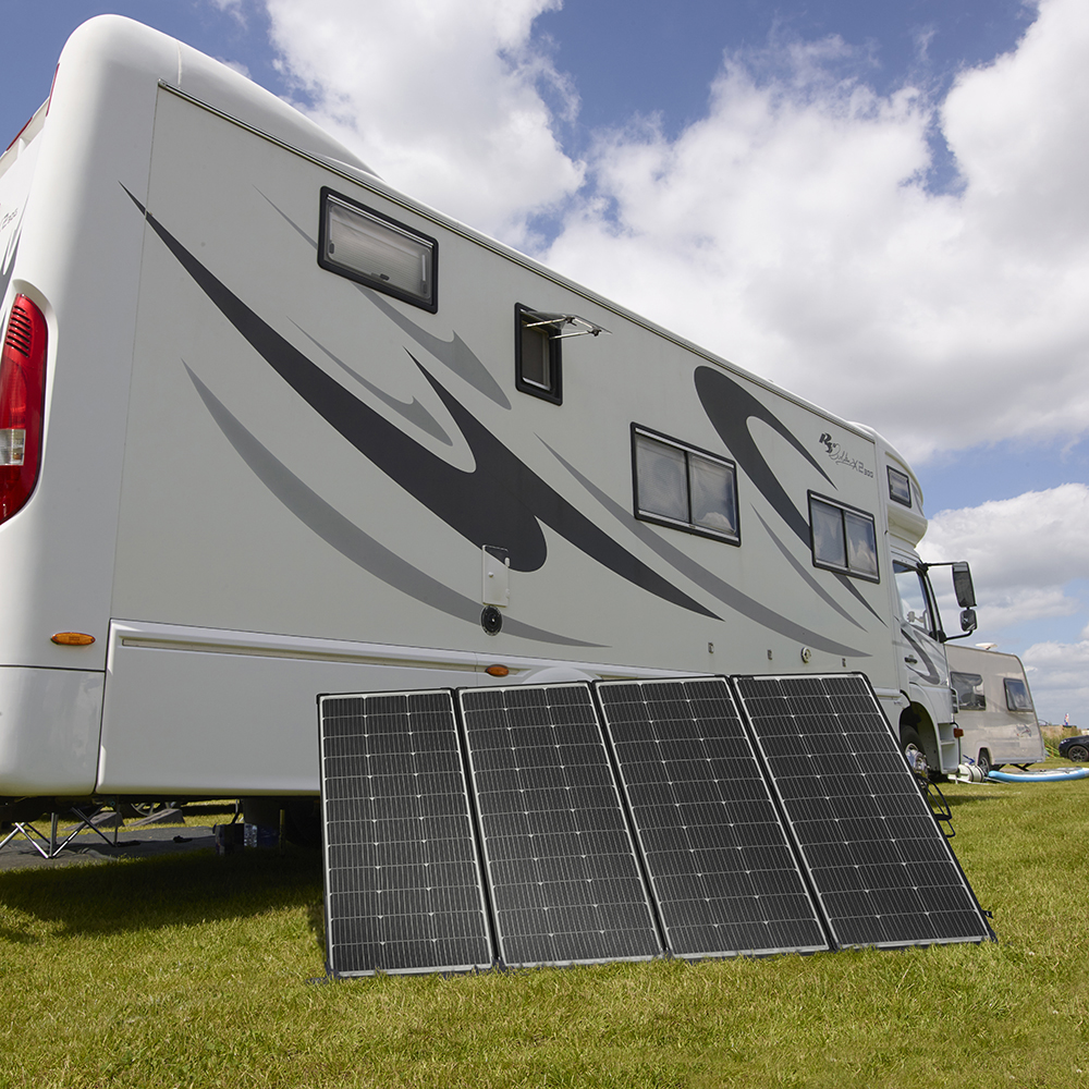 The 440 Watt folding solar panel is perfect option for the owners of large motorhomes and caravans who want the versatility of portable solar panels with the freedom to be off-grid for days at time on trips away and at rallies without electrical hook-up.