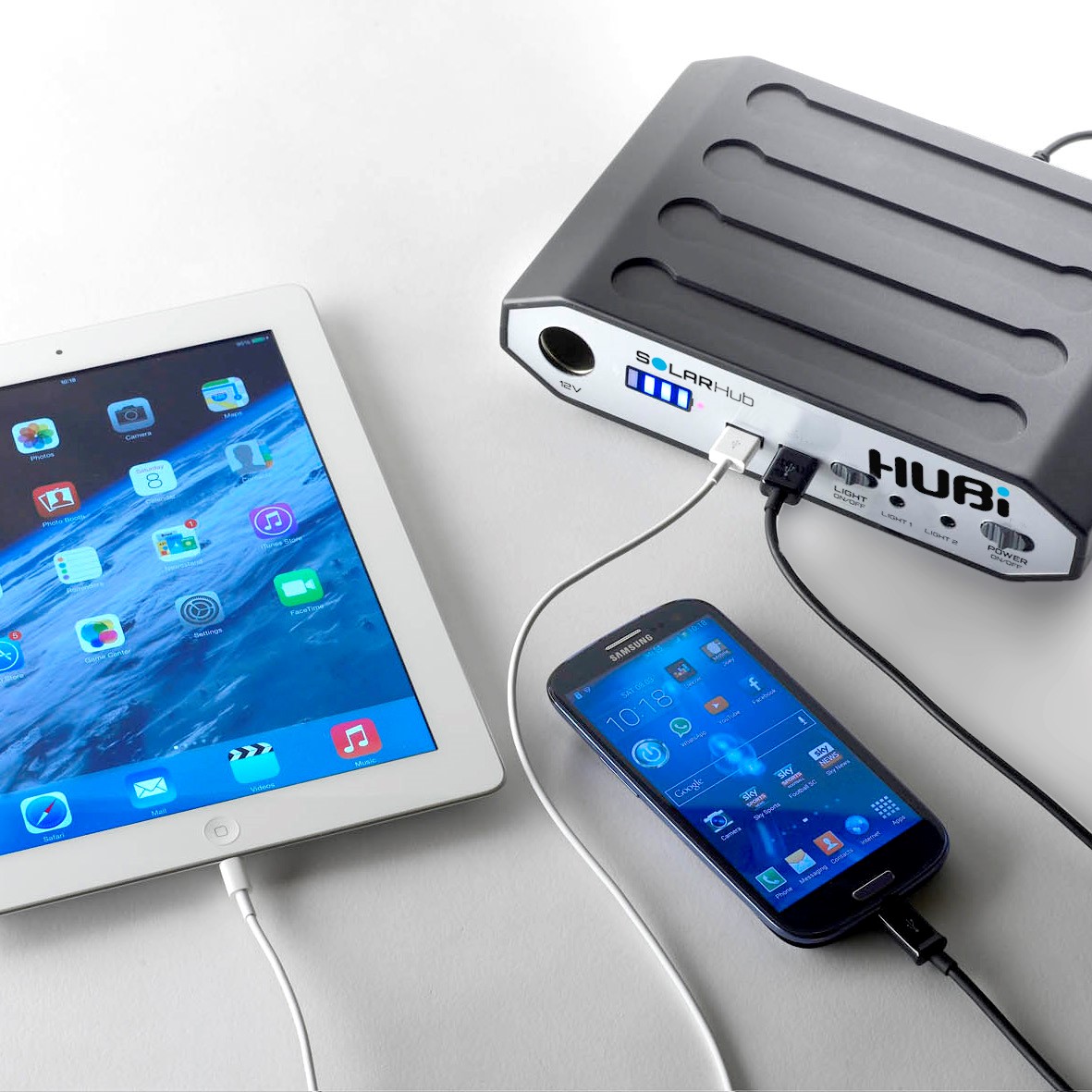 Hubi Go is powered by a highly efficient solar cell that feeds the Hubi lithium battery pack, which in turn provides the power for our super bright lanterns and other devices.