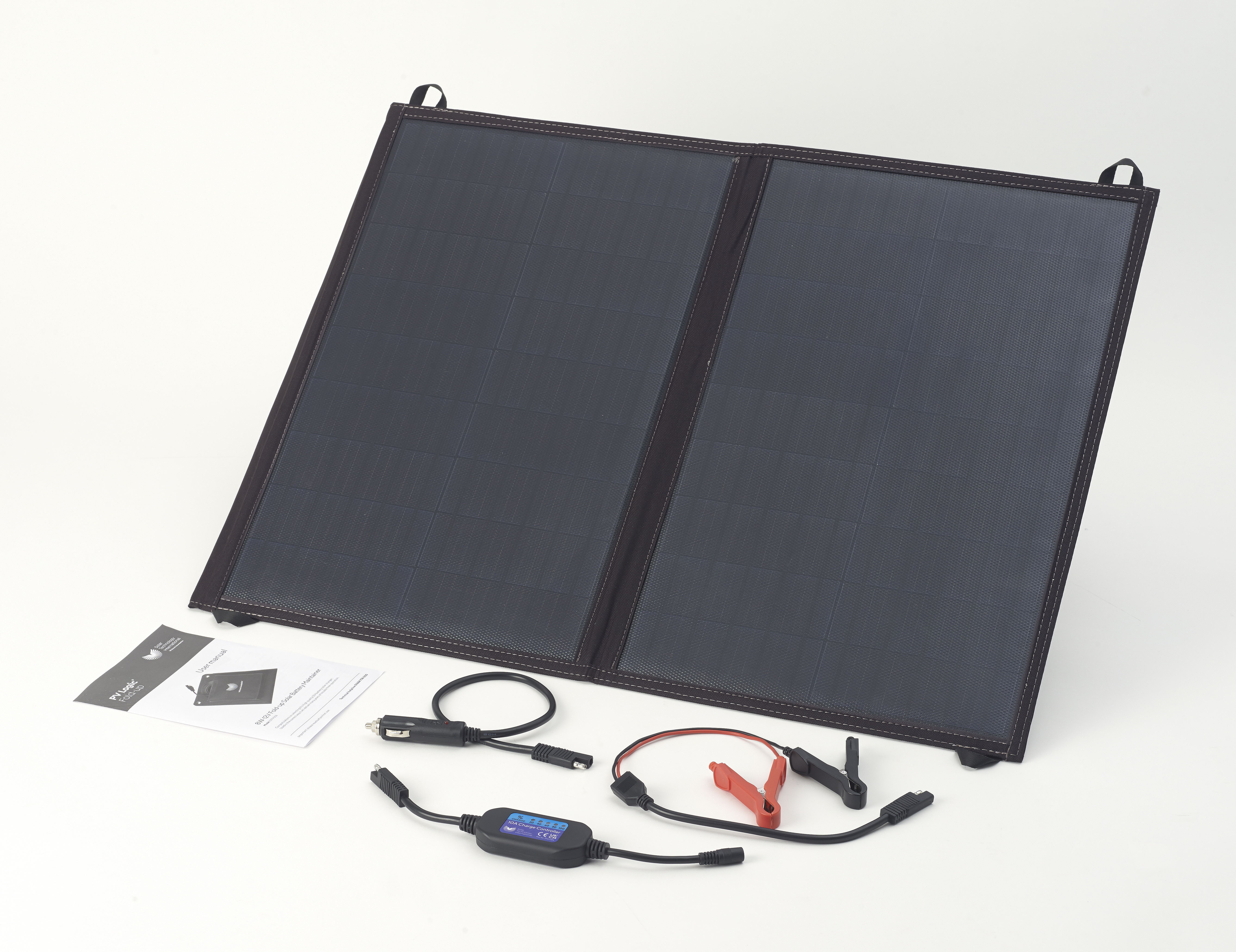 1 x 60W fold up solar panel with connecting cable (plus 10Ah inline charge controller, crocodile clips and 12V auto plug)