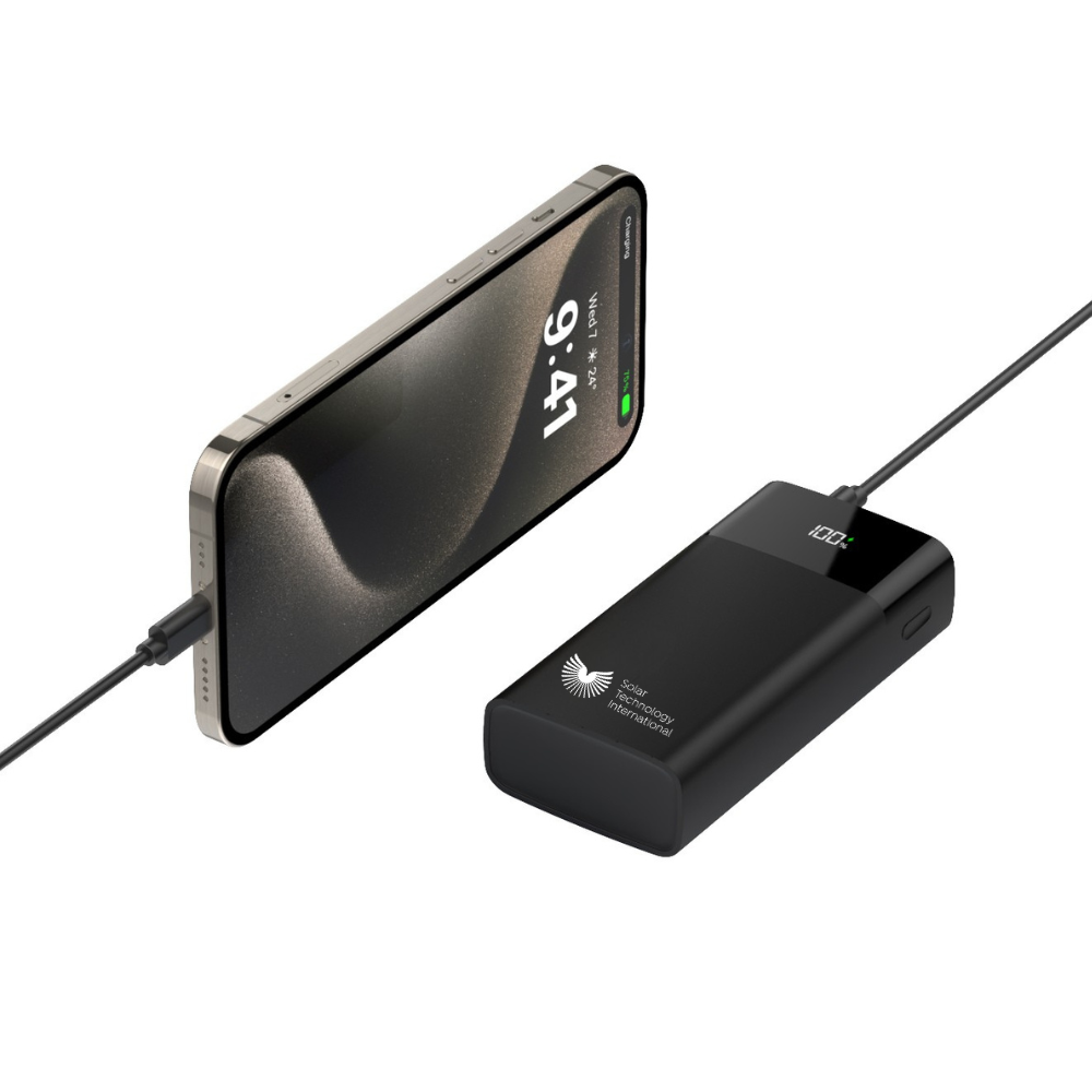 • Solar compatible; connect to the PV Logic 24W Phone & USB Solar Charger for off-grid recharging.